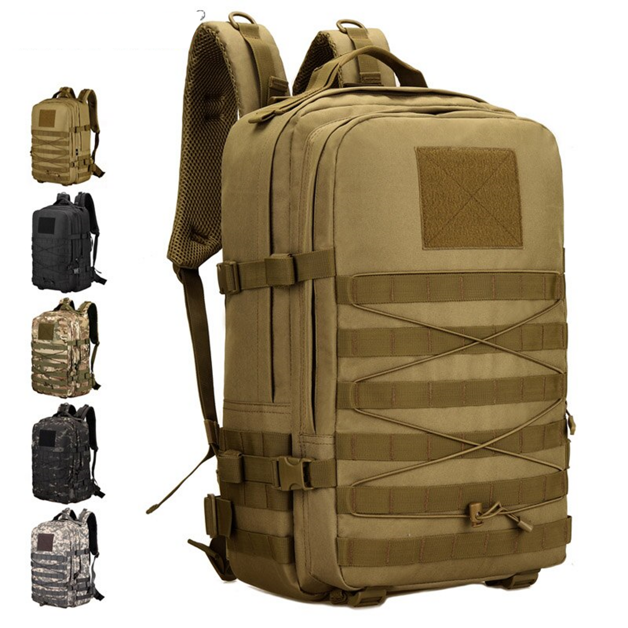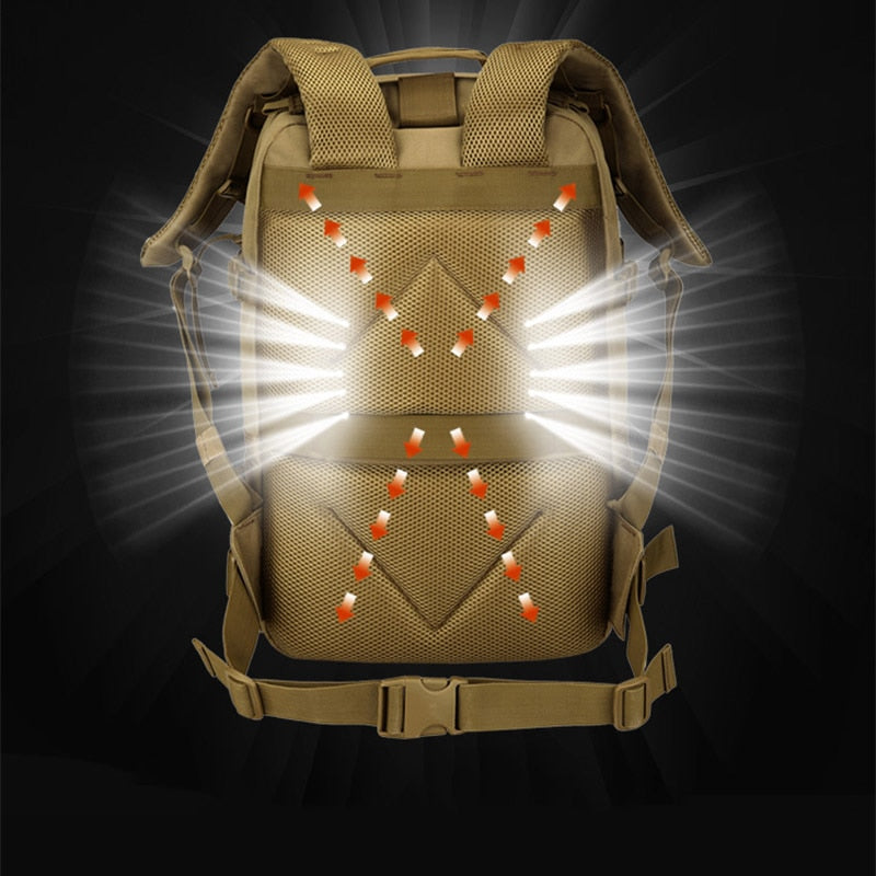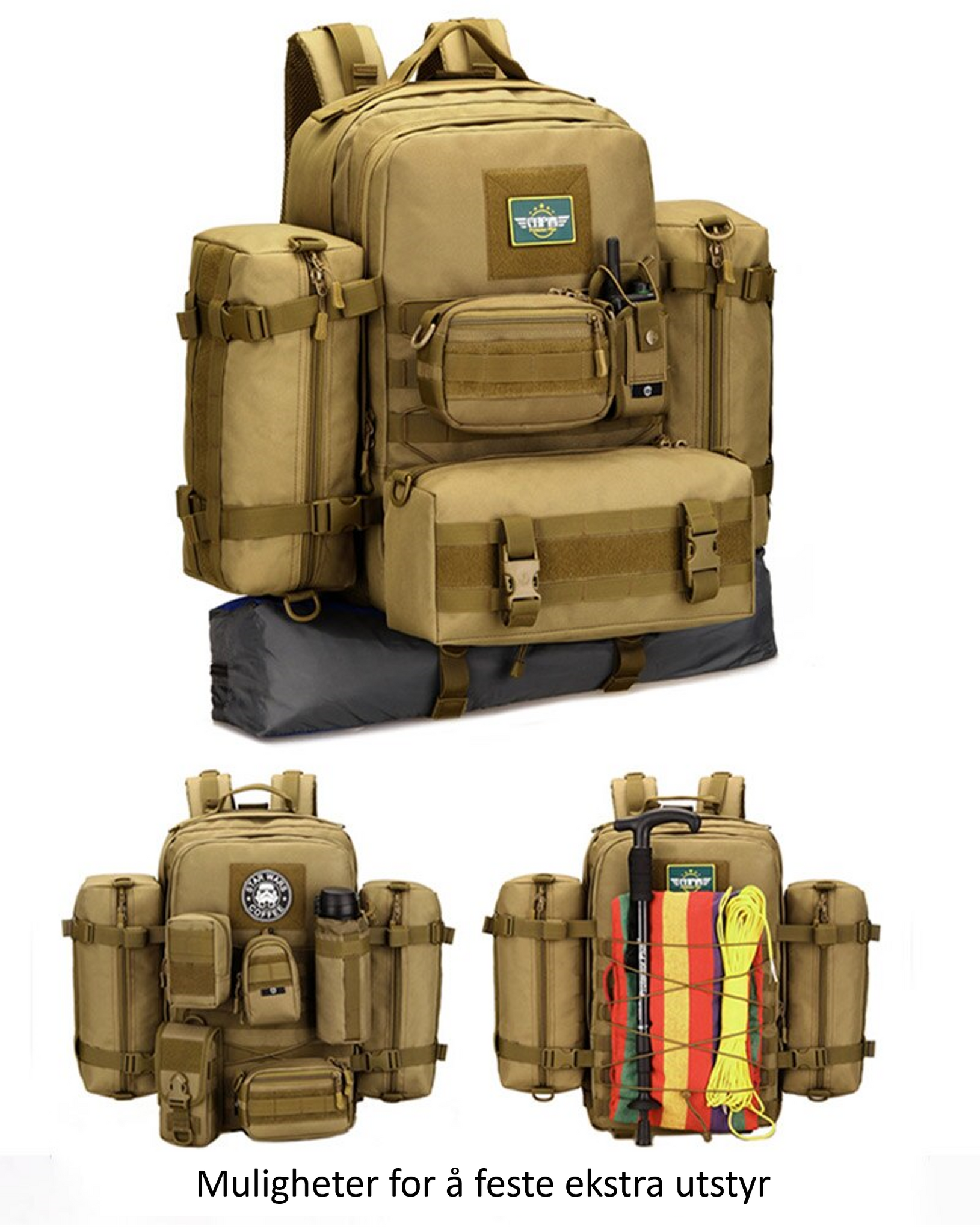 Vår militær-inspirerte sekk er det ultimate valget for deg som søker en robust og praktisk sekk til utendørs aktiviteter. Med en kapasitet på opptil 45 liter, har du nok plass til å ta med deg alt du trenger for en dagstur eller en kortere overnattingstur.