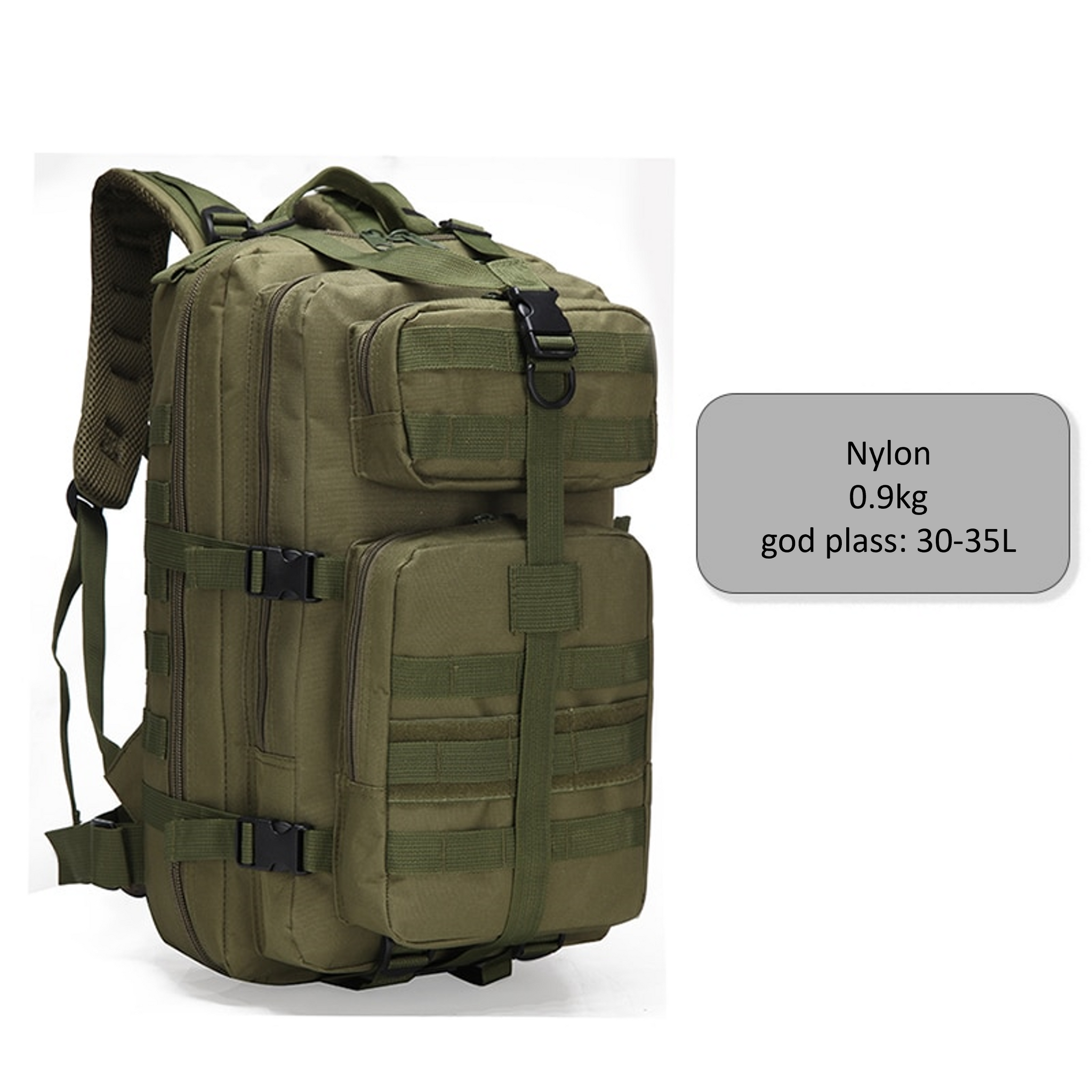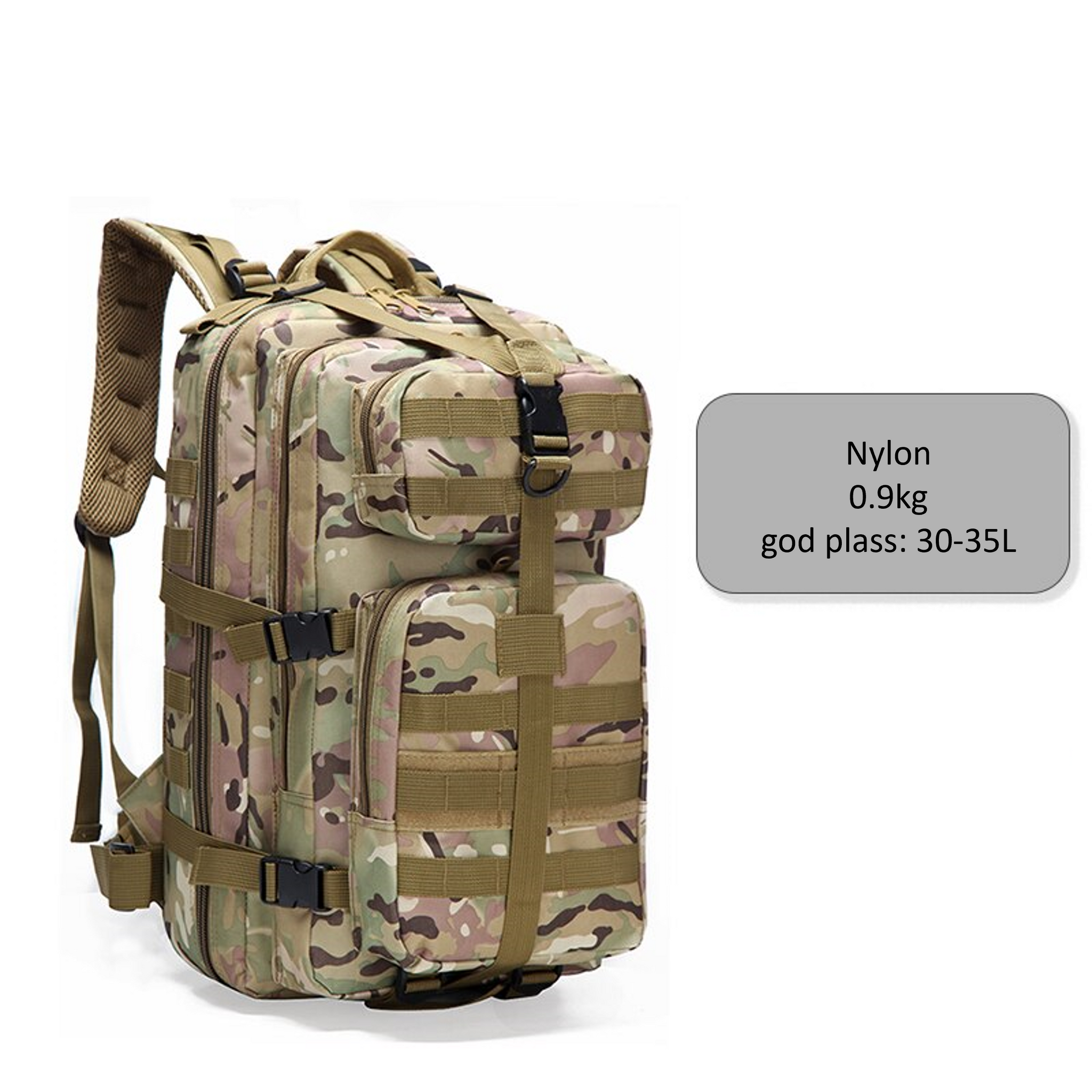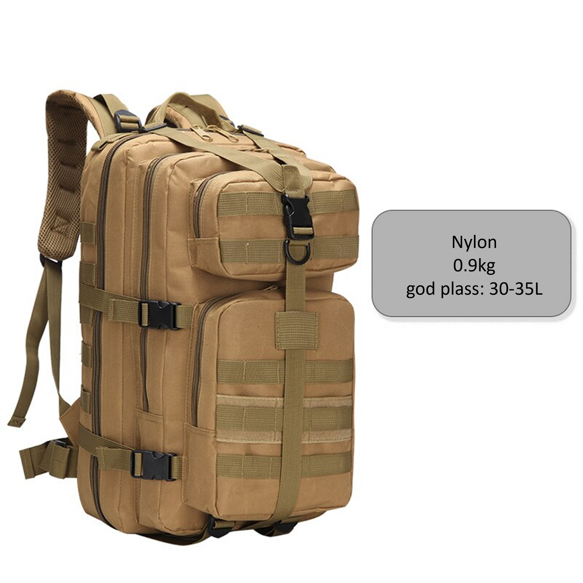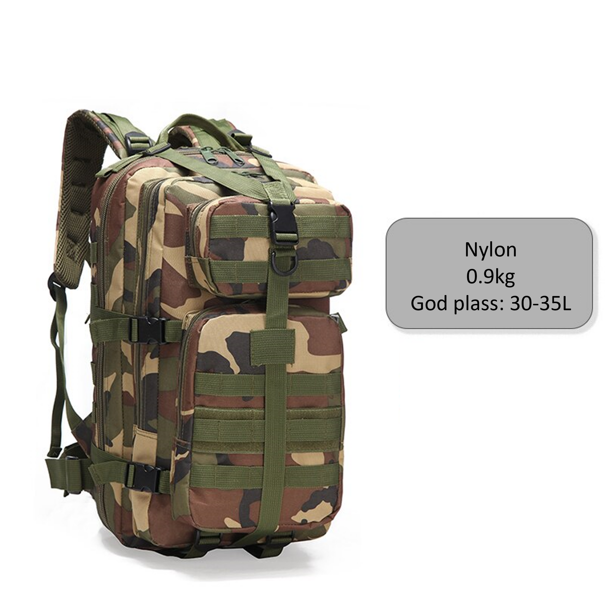 Vår militær-inspirerte sekk er det ultimate valget for deg som søker en robust og praktisk sekk til utendørs aktiviteter. Med en kapasitet på opptil 35 liter, har du nok plass til å ta med deg alt du trenger for en dagstur eller en kortere overnattingstur.