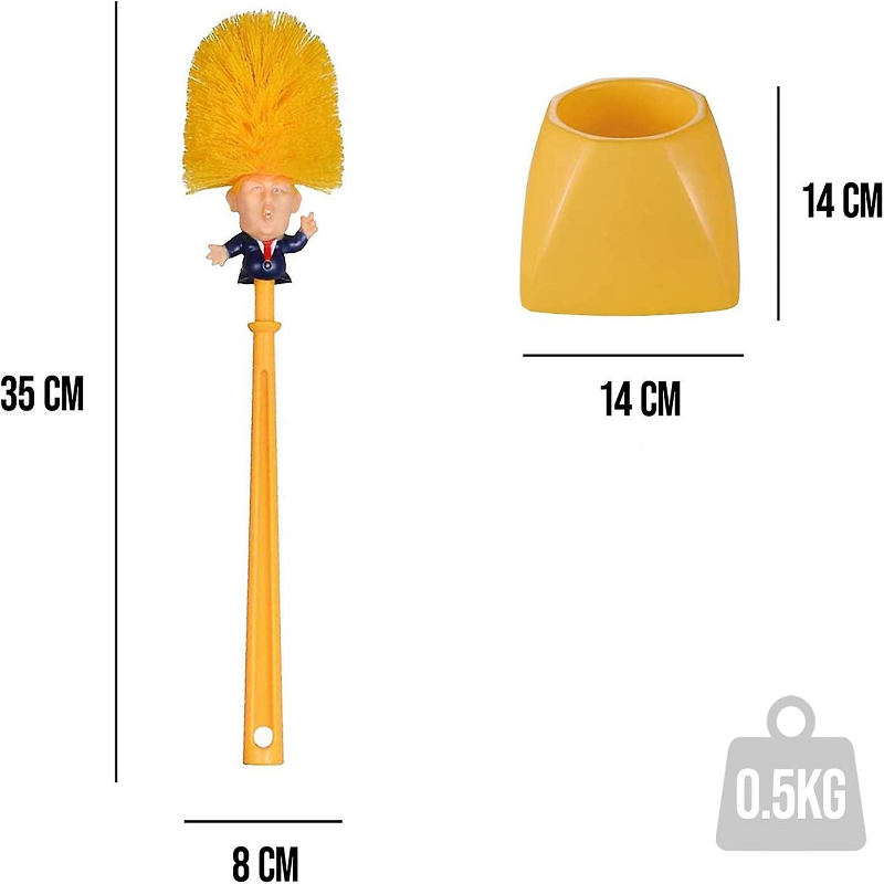 Toalettbørste Amerikansk President er en skikkelig kul toalettbørste som ligner den amerikanske presidenten. Børsten fungerer akkurat som en vanlig toalettbørste – den ser bare litt morsommere ut! Men vent litt, kjøper du nå, får du også med en unik toalettbørsteholder!