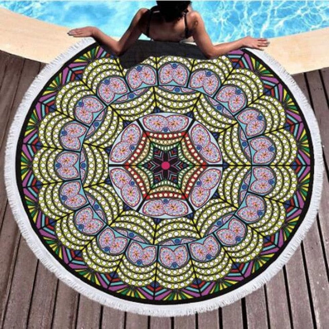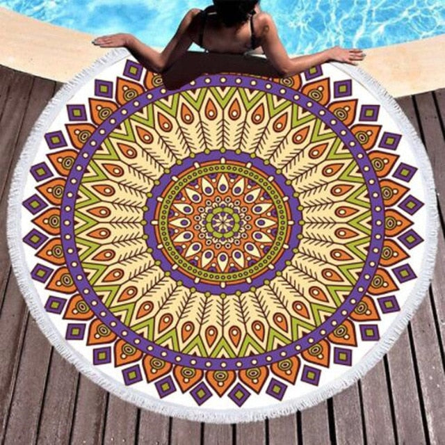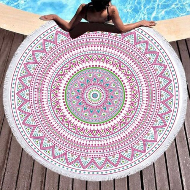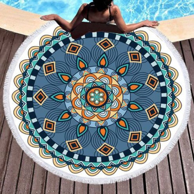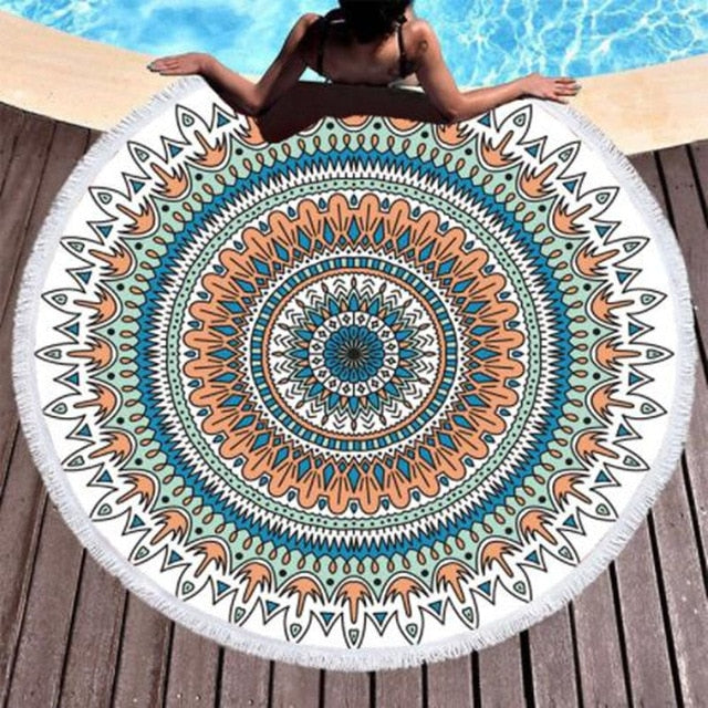 Dette runde strandhåndkleet i mikrofiber er det perfekte valget for sommer, strandliv og basseng. Med en diameter på hele 150 cm har du god plass til å ligge komfortabelt – enten du soler deg, slapper av eller tørker deg etter en dukkert.